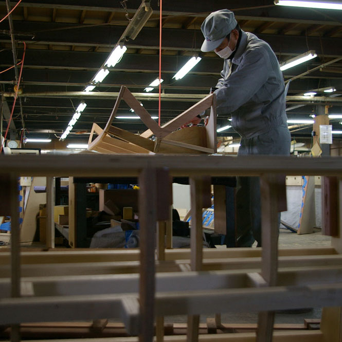 1946年(昭和21年)創業。「人にやさしい、暮らしにやさしい」をコンセプトに、国内生産に特化した家具を創作している家具メーカー。職人の手しごとが幾重にも折り重なり一つの家具を創り上げています。