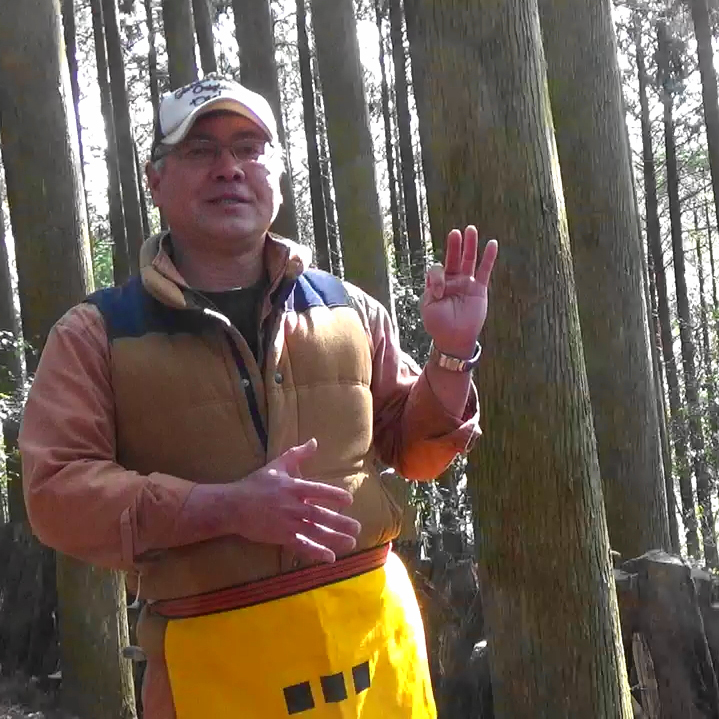 ① 原木に駒打ち