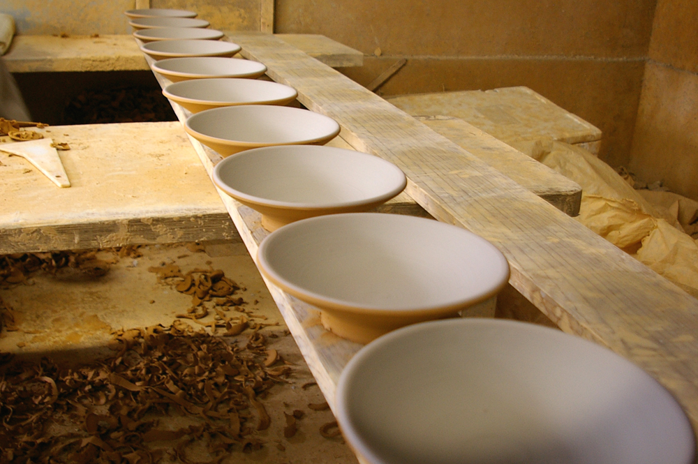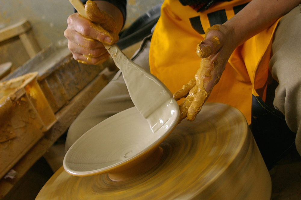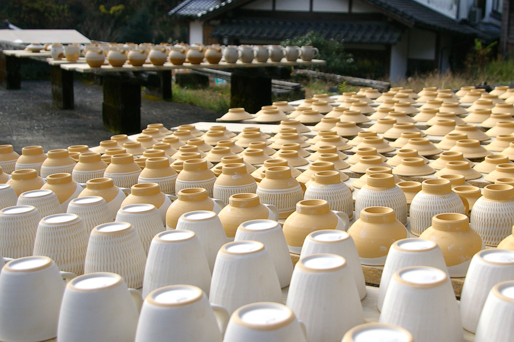 開窯300年。現在、窯元は全部で9軒。江戸時代中期から長きにわたり、一子相伝、親から子へ子から孫へと技を紡いでいます。また、全行程、手しごとで、陶器づくりをしています。
